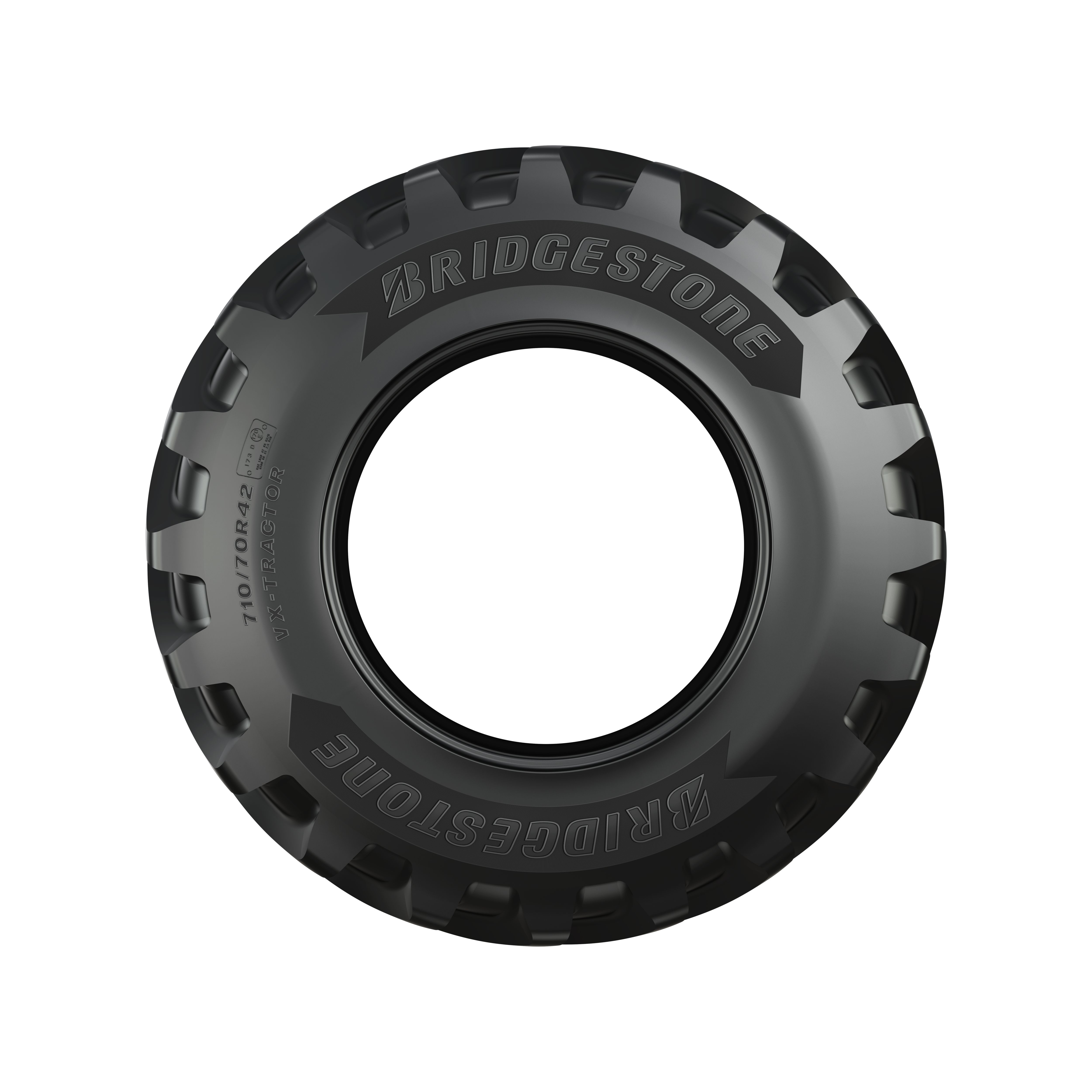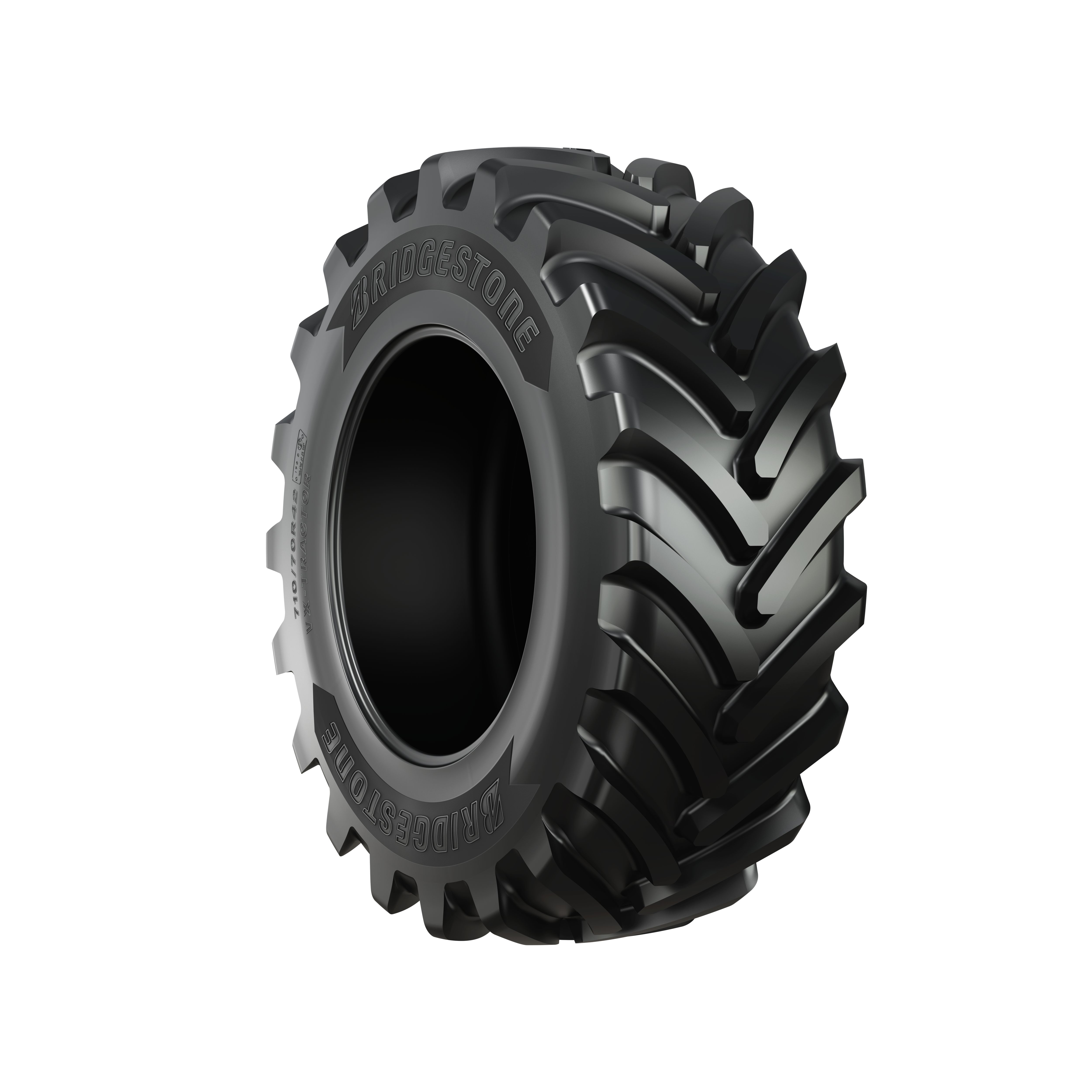 2 Bridgestone VX-TRACTOR in sizes 600/70R28 and 710/70R42 compared to the equivalent sizes of Michelin MACHXBIB. Projected wear life based on field test data. Actual results will vary depending on several factors such as tire size, operation conditions, maintenance, field conditions, and driving style.