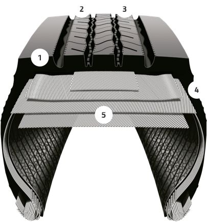 Long Tread Life Solid shoulder ribs and a high scrub tread compound enhances resistance and helps increase tread life.